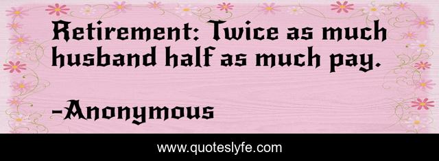 "Anonymous Quotes." Quoteslyfe.com, 2025. Mon. 08 Dec. 2025. <https://www.quoteslyfe.com/quote/Retirement-Twice-as-much-husband-half-as-274897>.