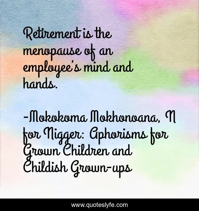 "Mokokoma Mokhonoana Quotes." Quoteslyfe.com, 2025. Fri. 05 Dec. 2025. <https://www.quoteslyfe.com/quote/Retirement-is-the-menopause-of-an-employee-197860>.