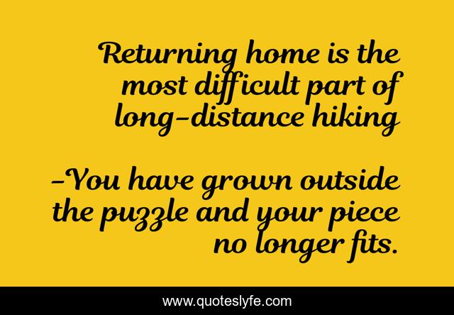 This page presents the quote "Returning home is the most difficult part of long-distance hiking". Author of this quote is You have grown outside the puzzle and your piece no longer fits.. .