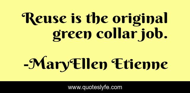 "MaryEllen Etienne Quotes." Quoteslyfe.com, 2025. Fri. 05 Dec. 2025. <https://www.quoteslyfe.com/quote/Reuse-is-the-original-green-collar-job-280388>.