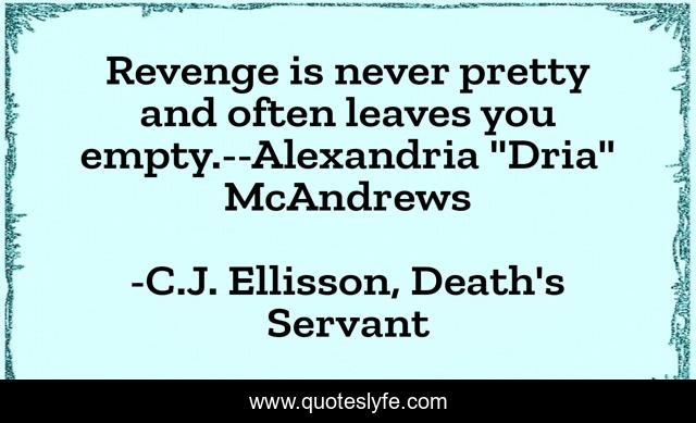 This page presents the quote "Revenge is never pretty and often leaves you empty.--Alexandria "Dria" McAndrews". Author of this quote is C.J. Ellisson, Death's Servant. .