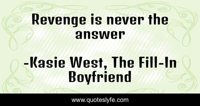"Kasie West, The Fill-In Boyfriend Quotes." Quoteslyfe.com, 2025. Sat. 06 Dec. 2025. <https://www.quoteslyfe.com/quote/Revenge-is-never-the-answer-217642>.