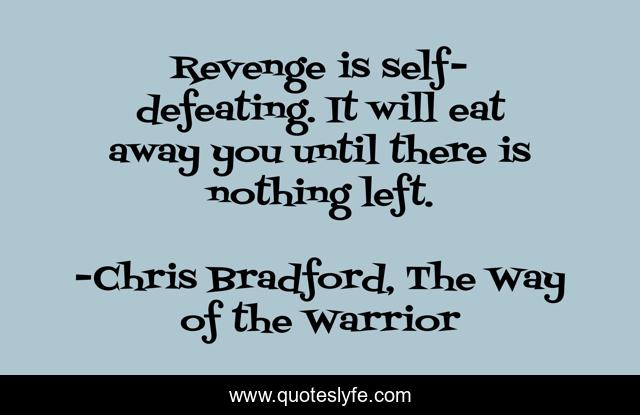 "Chris Bradford, The Way of the Warrior Quotes." Quoteslyfe.com, 2025. Fri. 05 Dec. 2025. <https://www.quoteslyfe.com/quote/Revenge-is-self-defeating-It-will-eat-217651>.