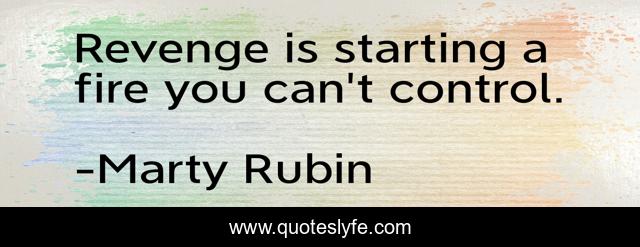 This page presents the quote "Revenge is starting a fire you can't control.". Author of this quote is Marty Rubin. This quote is about control, chaos, revenge,.