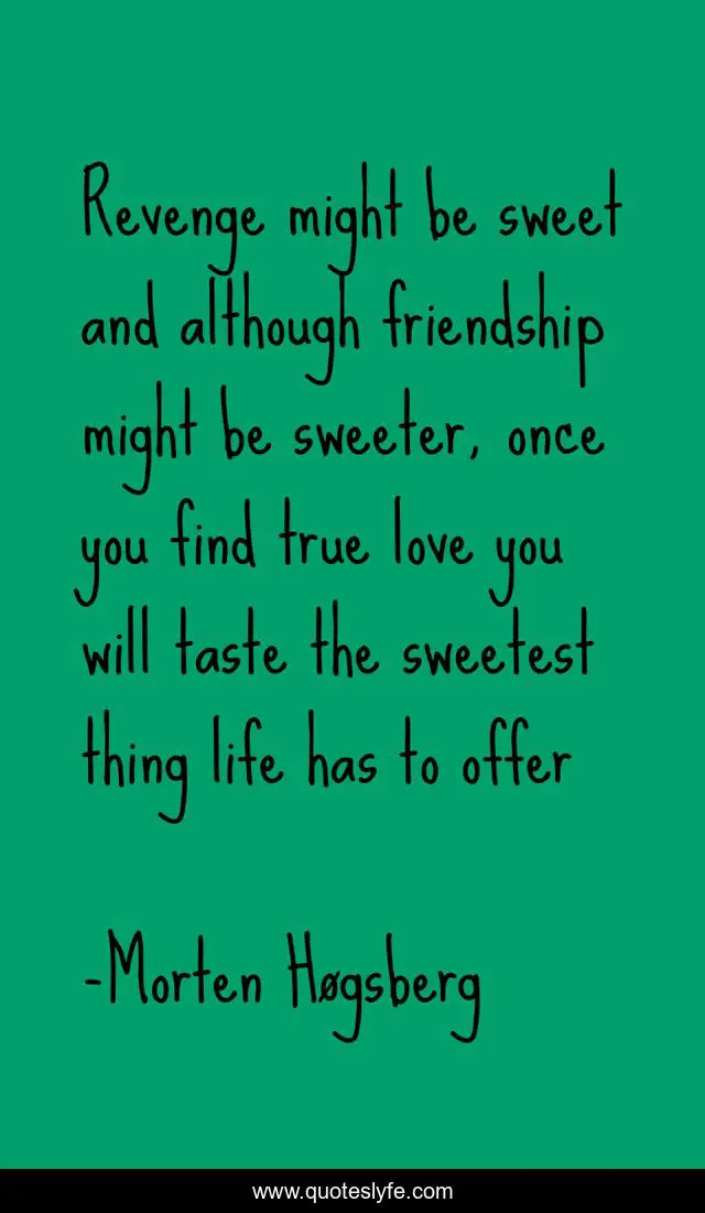 This page presents the quote "Revenge might be sweet and although friendship might be sweeter, once you find true love you will taste the sweetest thing life has to offer". Author of this quote is Morten Høgsberg. This quote is about friendship, love, revenge, affection,.