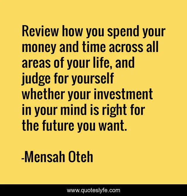 "Mensah Oteh Quotes." Quoteslyfe.com, 2025. Sat. 06 Dec. 2025. <https://www.quoteslyfe.com/quote/Review-how-you-spend-your-money-and-48971>.
