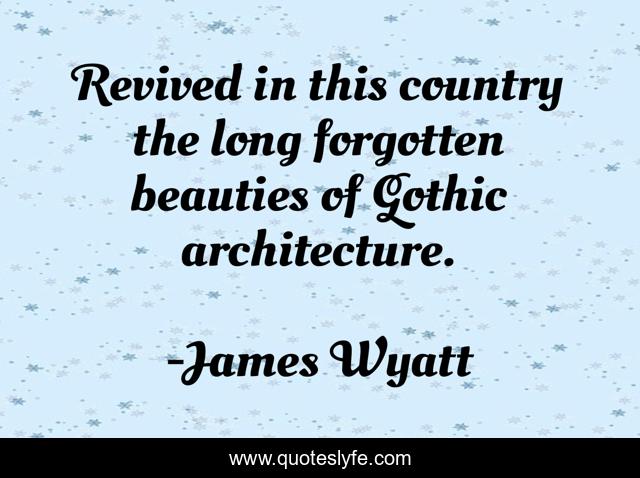This page presents the quote "Revived in this country the long forgotten beauties of Gothic architecture.". Author of this quote is James Wyatt. This quote is about country, long, forgotten,.