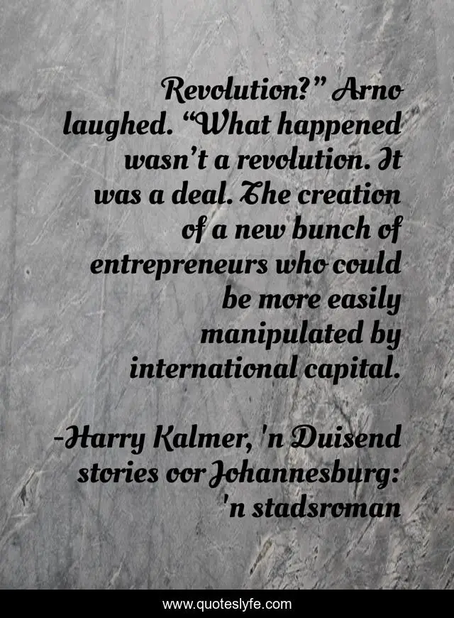 "Harry Kalmer, 'n Duisend stories oor Johannesburg: 'n stadsroman Quotes." Quoteslyfe.com, 2025. Sat. 06 Dec. 2025. <https://www.quoteslyfe.com/quote/Revolution-Arno-laughed-What-happened-wasn-t-206940>.