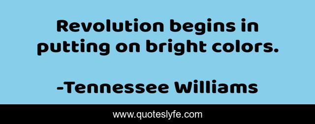 "Tennessee Williams Quotes." Quoteslyfe.com, 2025. Fri. 05 Dec. 2025. <https://www.quoteslyfe.com/quote/Revolution-begins-in-putting-on-bright-colors-206905>.