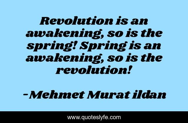 This page presents the quote "Revolution is an awakening, so is the spring! Spring is an awakening, so is the revolution!". Author of this quote is Mehmet Murat ildan. .