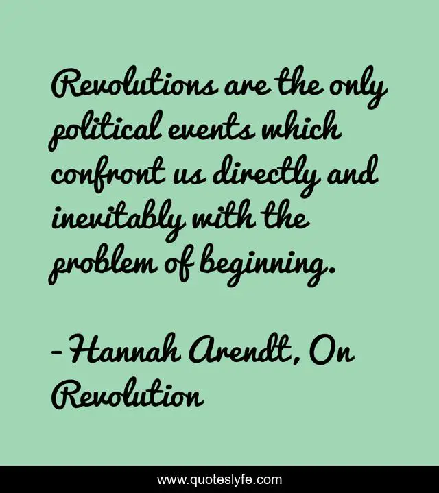 "Hannah Arendt, On Revolution Quotes." Quoteslyfe.com, 2025. Fri. 05 Dec. 2025. <https://www.quoteslyfe.com/quote/Revolutions-are-the-only-political-events-which-207079>.