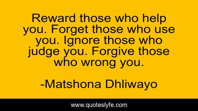 "Matshona Dhliwayo Quotes." Quoteslyfe.com, 2025. Fri. 05 Dec. 2025. <https://www.quoteslyfe.com/quote/Reward-those-who-help-you-Forget-those-58045>.