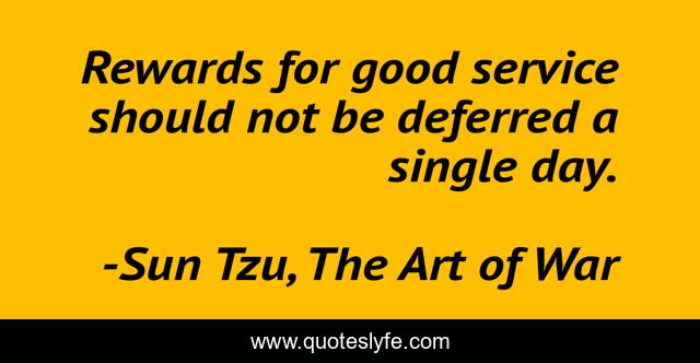 This page presents the quote "Rewards for good service should not be deferred a single day.". Author of this quote is Sun Tzu, The Art of War. This quote is about war, business, strategy,.