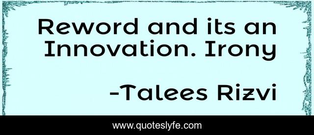 This page presents the quote "Reword and its an Innovation. Irony". Author of this quote is Talees Rizvi. This quote is about innovation, reword, irony-of-life,.