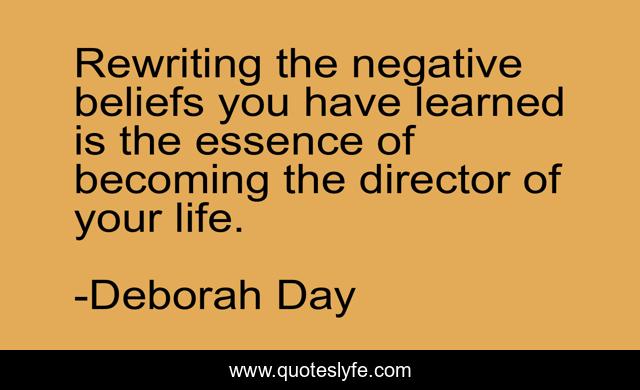 This page presents the quote "Rewriting the negative beliefs you have learned is the essence of becoming the director of your life.". Author of this quote is Deborah Day. This quote is about positive-thinking, beliefs, self-esteem,.