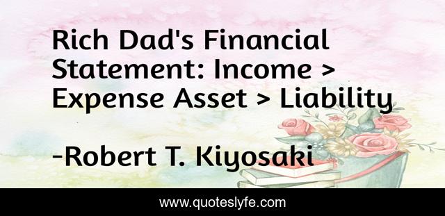 This page presents the quote "Rich Dad's Financial Statement: Income > Expense Asset > Liability". Author of this quote is Robert T. Kiyosaki. .