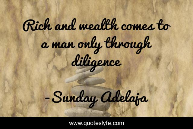 This page presents the quote "Rich and wealth comes to a man only through diligence". Author of this quote is Sunday Adelaja. This quote is about riches, wealth, rich,.