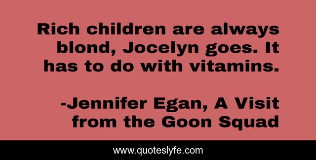 "Jennifer Egan, A Visit from the Goon Squad Quotes." Quoteslyfe.com, 2025. Tue. 09 Dec. 2025. <https://www.quoteslyfe.com/quote/Rich-children-are-always-blond-Jocelyn-goes-7044>.