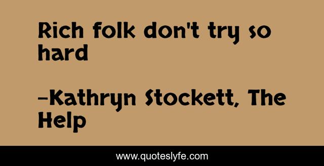"Kathryn Stockett, The Help Quotes." Quoteslyfe.com, 2025. Sat. 06 Dec. 2025. <https://www.quoteslyfe.com/quote/Rich-folk-don-t-try-so-hard-247816>.