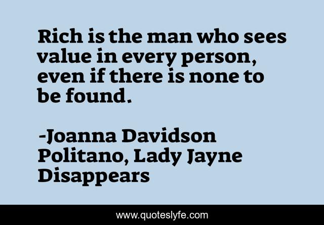 "Joanna Davidson Politano, Lady Jayne Disappears Quotes." Quoteslyfe.com, 2025. Fri. 05 Dec. 2025. <https://www.quoteslyfe.com/quote/Rich-is-the-man-who-sees-value-176113>.