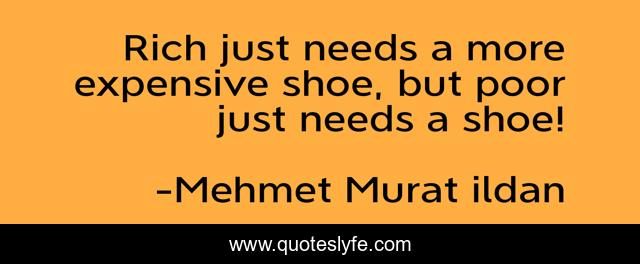 This page presents the quote "Rich just needs a more expensive shoe, but poor just needs a shoe!". Author of this quote is Mehmet Murat ildan. This quote is about poor, turkish-aphorisms, ildan-words, mehmet-murat-ildan, ildan-wise-sayings, turkish, ildan-wisdom, poor-and-rich, turkish-playwrights,.