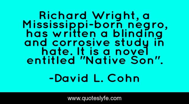 This page presents the quote "Richard Wright, a Mississippi-born negro, has written a blinding and corrosive study in hate. It is a novel entitled "Native Son".". Author of this quote is David L. Cohn. This quote is about criticism, hate,.
