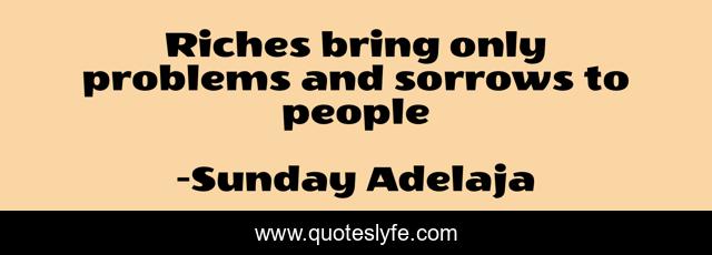 This page presents the quote "Riches bring only problems and sorrows to people". Author of this quote is Sunday Adelaja. This quote is about sorrows, money, problems, riches, wealth,.