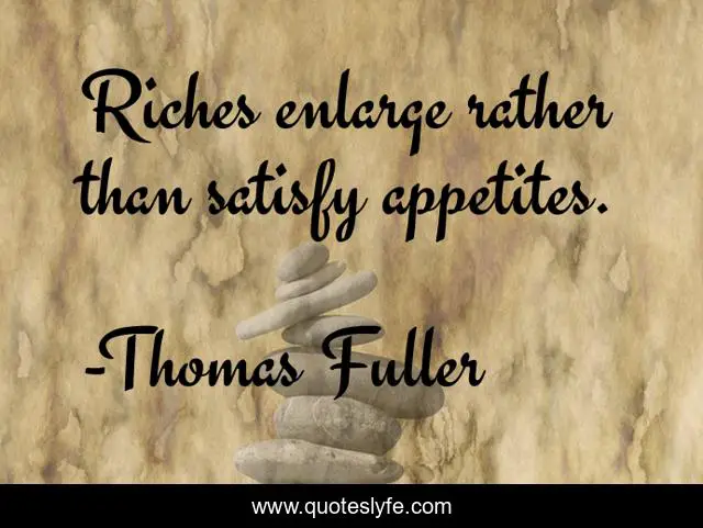 "Thomas Fuller Quotes." Quoteslyfe.com, 2025. Mon. 08 Dec. 2025. <https://www.quoteslyfe.com/quote/Riches-enlarge-rather-than-satisfy-appetites-278577>.
