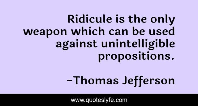 This page presents the quote "Ridicule is the only weapon which can be used against unintelligible propositions.". Author of this quote is Thomas Jefferson. This quote is about ridicule, satire,.