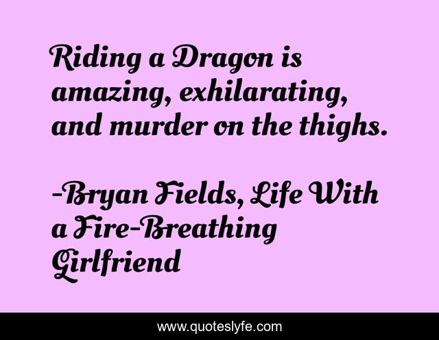"Bryan Fields, Life With a Fire-Breathing Girlfriend Quotes." Quoteslyfe.com, 2025. Mon. 08 Dec. 2025. <https://www.quoteslyfe.com/quote/Riding-a-Dragon-is-amazing-exhilarating-and-151847>.
