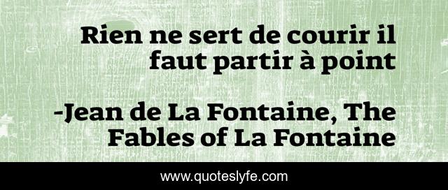 This page presents the quote "Rien ne sert de courir il faut partir à point". Author of this quote is Jean de La Fontaine, The Fables of La Fontaine. .