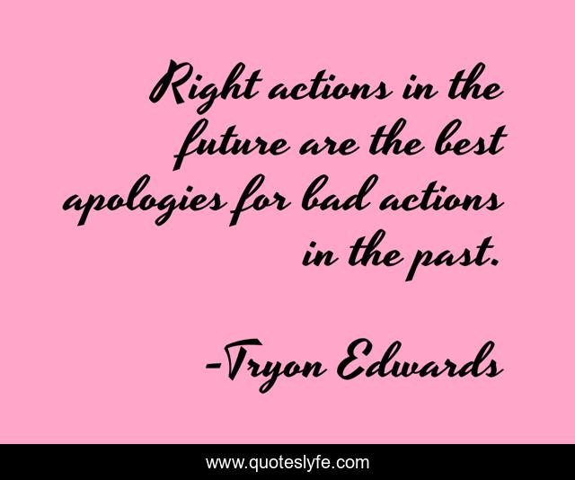 This page presents the quote "Right actions in the future are the best apologies for bad actions in the past.". Author of this quote is Tryon Edwards. This quote is about past, bad, future,.