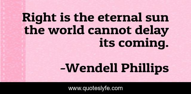 This page presents the quote "Right is the eternal sun the world cannot delay its coming.". Author of this quote is Wendell Phillips. .