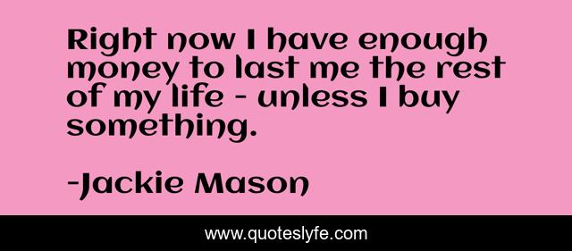 This page presents the quote "Right now I have enough money to last me the rest of my life - unless I buy something.". Author of this quote is Jackie Mason. .