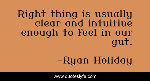 This page presents the quote "Right thing is usually clear and intuitive enough to feel in our gut.". Author of this quote is Ryan Holiday. This quote is about clear, right, intuitive, gut,.