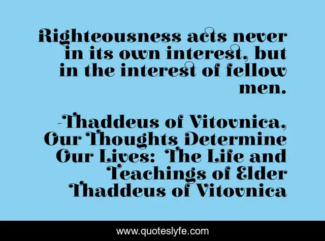 "Thaddeus of Vitovnica, Our Thoughts Determine Our Lives: The Life and Teachings of Elder Thaddeus of Vitovnica Quotes." Quoteslyfe.com, 2025. Fri. 05 Dec. 2025. <https://www.quoteslyfe.com/quote/Righteousness-acts-never-in-its-own-interest-61719>.