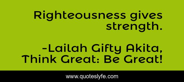"Lailah Gifty Akita, Think Great: Be Great! Quotes." Quoteslyfe.com, 2025. Mon. 08 Dec. 2025. <https://www.quoteslyfe.com/quote/Righteousness-gives-strength-141720>.