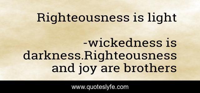 "wickedness is darkness.Righteousness and joy are brothers Quotes." Quoteslyfe.com, 2025. Fri. 05 Dec. 2025. <https://www.quoteslyfe.com/quote/Righteousness-is-light-121223>.