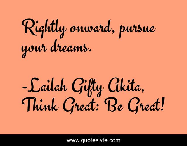 "Lailah Gifty Akita, Think Great: Be Great! Quotes." Quoteslyfe.com, 2025. Mon. 08 Dec. 2025. <https://www.quoteslyfe.com/quote/Rightly-onward-pursue-your-dreams-208375>.