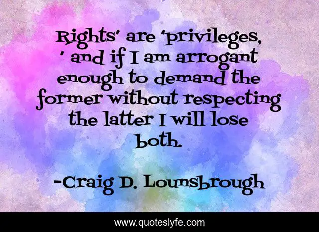 "Craig D. Lounsbrough Quotes." Quoteslyfe.com, 2025. Fri. 05 Dec. 2025. <https://www.quoteslyfe.com/quote/Rights-are-privileges-and-if-I-am-54850>.