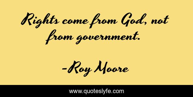 This page presents the quote "Rights come from God, not from government.". Author of this quote is Roy Moore. This quote is about god, come, rights,.
