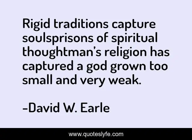 "David W. Earle Quotes." Quoteslyfe.com, 2025. Sat. 06 Dec. 2025. <https://www.quoteslyfe.com/quote/Rigid-traditions-capture-soulsprisons-of-spiritual-thoughtman-111488>.