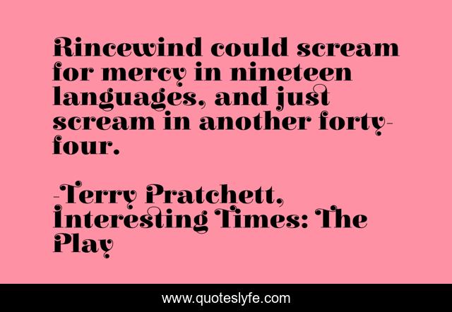 "Terry Pratchett, Interesting Times: The Play Quotes." Quoteslyfe.com, 2025. Wed. 10 Dec. 2025. <https://www.quoteslyfe.com/quote/Rincewind-could-scream-for-mercy-in-nineteen-6514>.