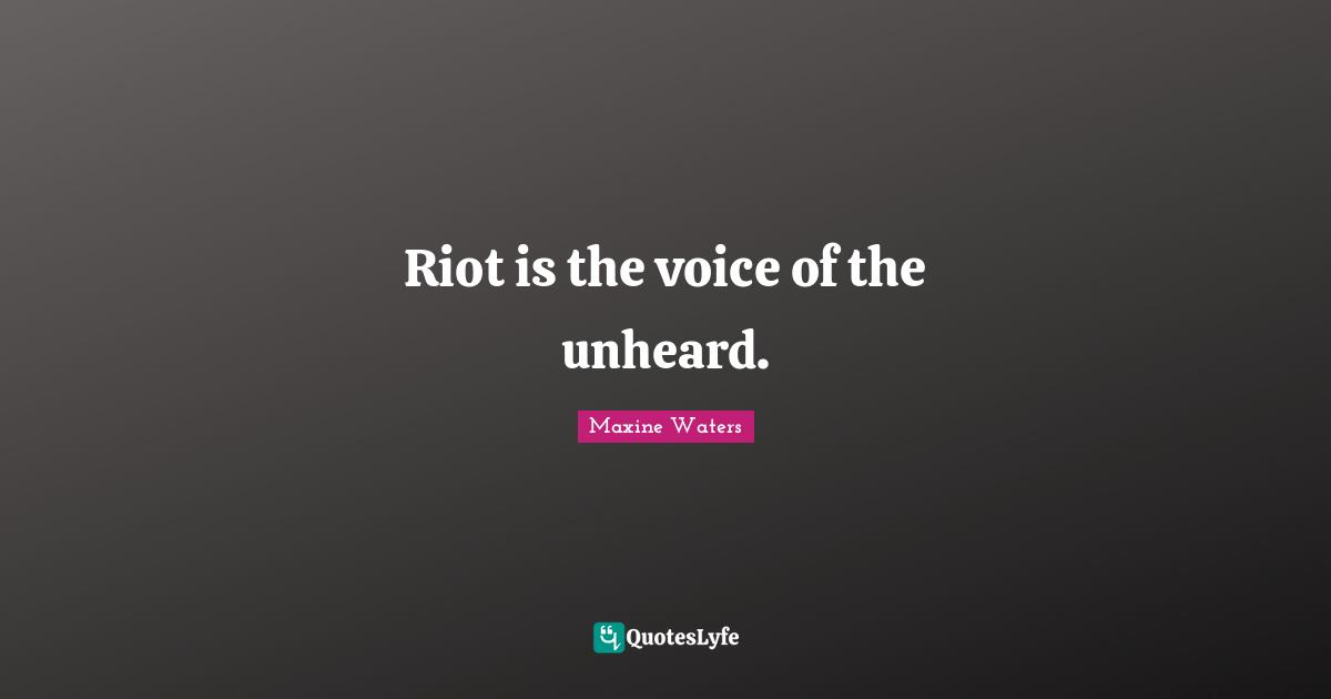 "Maxine Waters Quotes." Quoteslyfe.com, 2026. Wed. 14 Jan. 2026. <https://www.quoteslyfe.com/quote/Riot-is-the-voice-of-the-unheard-876361>.