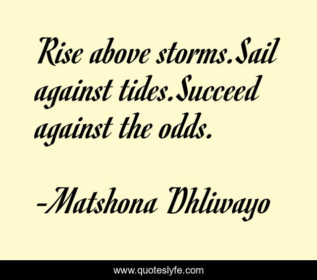 "Matshona Dhliwayo Quotes." Quoteslyfe.com, 2025. Fri. 05 Dec. 2025. <https://www.quoteslyfe.com/quote/Rise-above-storms-Sail-against-tides-Succeed-109383>.