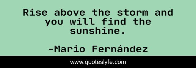 This page presents the quote "Rise above the storm and you will find the sunshine.". Author of this quote is Mario Fernández. This quote is about perseverance, rise-above, inspirational, enthusiasm,.