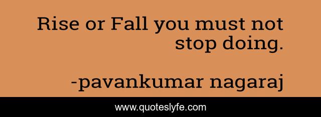 This page presents the quote "Rise or Fall you must not stop doing.". Author of this quote is pavankumar nagaraj. This quote is about life, love, risk, sadness, hate, affection,.
