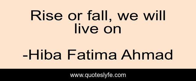 "Hiba Fatima Ahmad Quotes." Quoteslyfe.com, 2025. Sat. 06 Dec. 2025. <https://www.quoteslyfe.com/quote/Rise-or-fall-we-will-live-on-257235>.