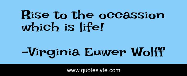 This page presents the quote "Rise to the occassion which is life!". Author of this quote is Virginia Euwer Wolff. This quote is about enthusiasm, life, inspirational,.