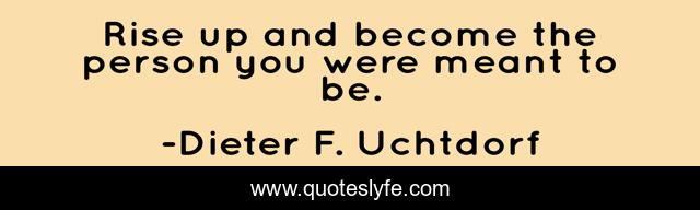 This page presents the quote "Rise up and become the person you were meant to be.". Author of this quote is Dieter F. Uchtdorf. .